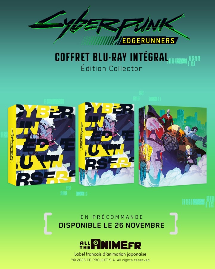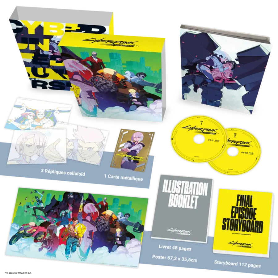 Il y a presque un an, les éditions All the Anime annonçaient la sortie en 2025 de la série animée Cyberpunk Edgerunners. C’est la semaine dernière que l’éditeur a apporté des précisions quant à la sortie de l’anime sous la forme de trois coffrets différents : une intégrale classique, une version steelbook et une version deluxe. Rappelons que la série a été réalisée par le studio Trigger et Hiroyuki Imaishi, dérivée du jeu vidéo Cyberpunk 2077 du studio CD Projekt RED, lui-même dérivé de la licence de jeu de rôle Cyberpunk 2020 conçue par Mike Pondsmith. Ces coffrets seront l’occasion de (re)découvrir la série dans une bien meilleure qualité.