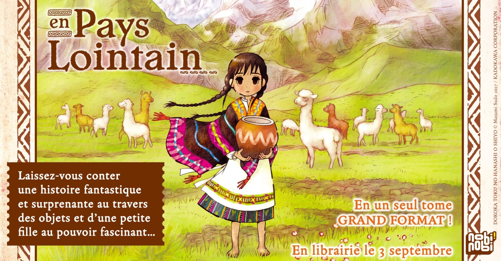 Il y a quelques heures, les éditions Nobi Nobi ! ont annoncé sur leurs réseaux sociaux l’arrivée dans leur catalogue d’un nouveau manga : En pays lointain, écrit et dessiné par Masumi Sudou. La série se présente comme une fable écologique entre le conte et la SF, une tranche de vie dans laquelle on suit Chilo, une petite fille avec la capacité de parler aux objets, qui va découvrir un inconnu venu d’un pays lointain et mystérieux dans son grenier. Un titre « hors du temps, plein de poésie, d’émerveillement et de surprises ».
