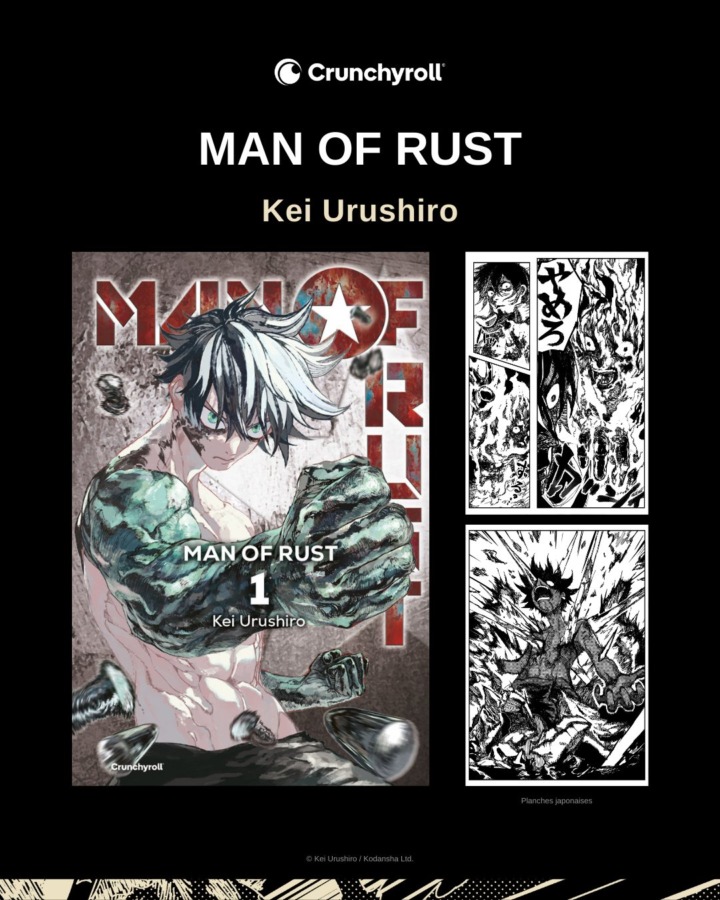 Il y a quelques jours, au début de la semaine, les éditions Crunchyroll ont annoncé sur leurs réseaux sociaux l’arrivée dans leur catalogue du manga Man of Rust, écrit et dessiné par Kei Urushino. La série se présente comme un manga d’action dans lequel on suit Ruo, un garçon qui des profondeurs qui va devoir se battre pour acquérir sa liberté.