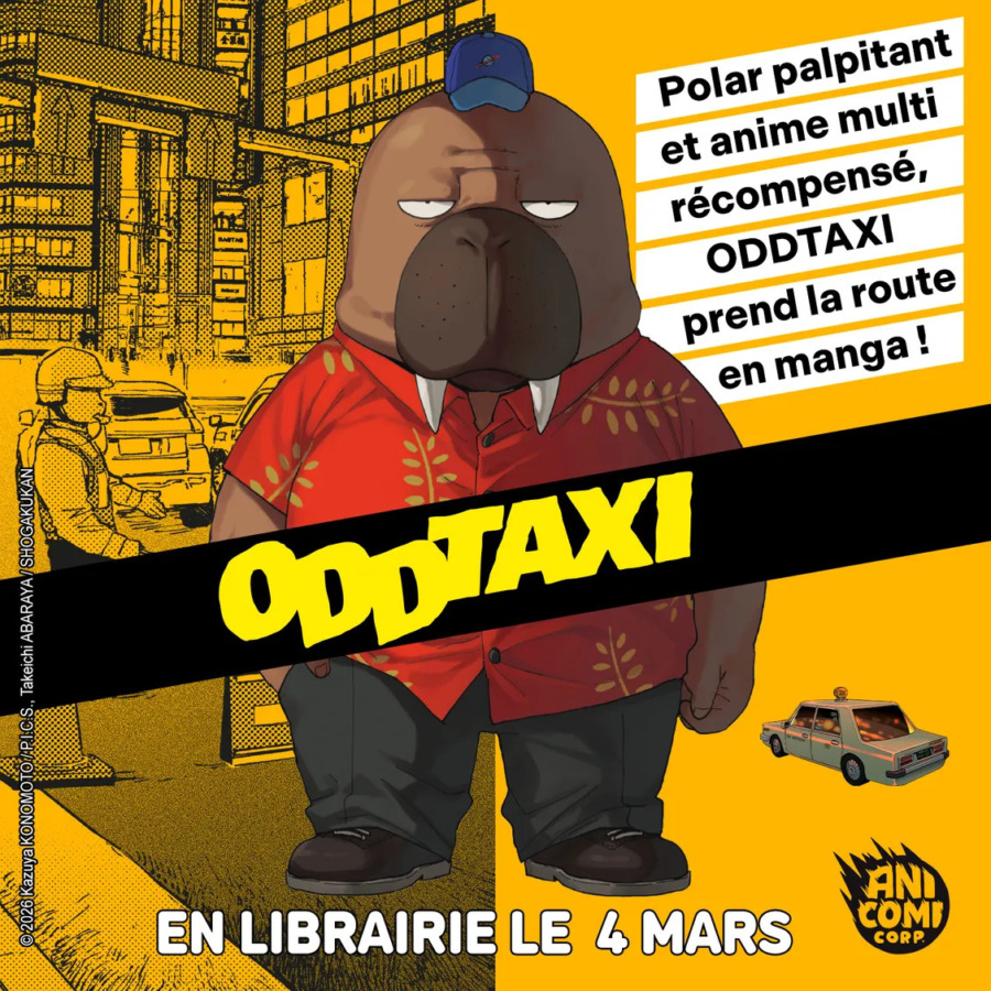 L’adaptation en manga d’ODDTAXI sortira chez Nobi Nobi ce mois-ci.