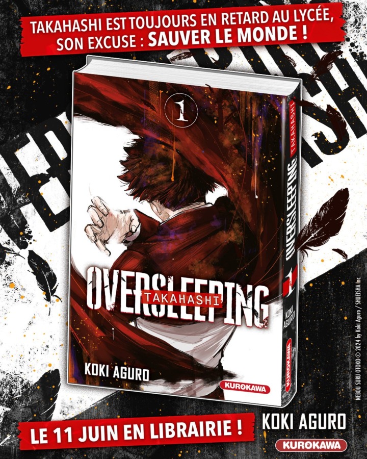 En fin de mois dernier, il y a quelques jours, les éditions Kurokawa ont annoncé sur leurs réseaux sociaux l’arrivée dans leur catalogue d’une nouvelle série courte : Oversleeping Takahashi, écrit et dessiné par Koki Aguro. La série se présente comme une comédie d’action dans laquelle on suit Yoji, un lycéen qui arrive toujours en retard, prétextant ne pas s’être réveillé auprès de sa camarade Megumi. Seulement elle ne le croit pas et décide de vérifier ses dires en allant chez lui. Le garçon s’avère en réalité capable de voir les esprits et ceux-ci lui mènent la vie dure.