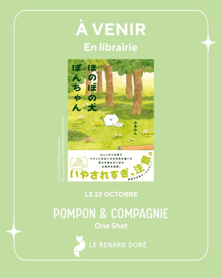 Pompon & Compagnie, ou Honobonoken Ponchan (ほのぼの犬ぽんちゃん) au Japon, a été publié il y a un peu plus de deux ans, le 26 avril 2023, aux éditions Kadokawa. Il regroupe des illustrations et strips de Furuyan publiés sur ses réseaux sociaux (twitter, instagram) depuis plusieurs années. De nouveaux travaux de l’auteur sont d’ailleurs toujours publiés régulièrement. C’est le premier manga de son auteur, Furuyan, qui parait chez nous.