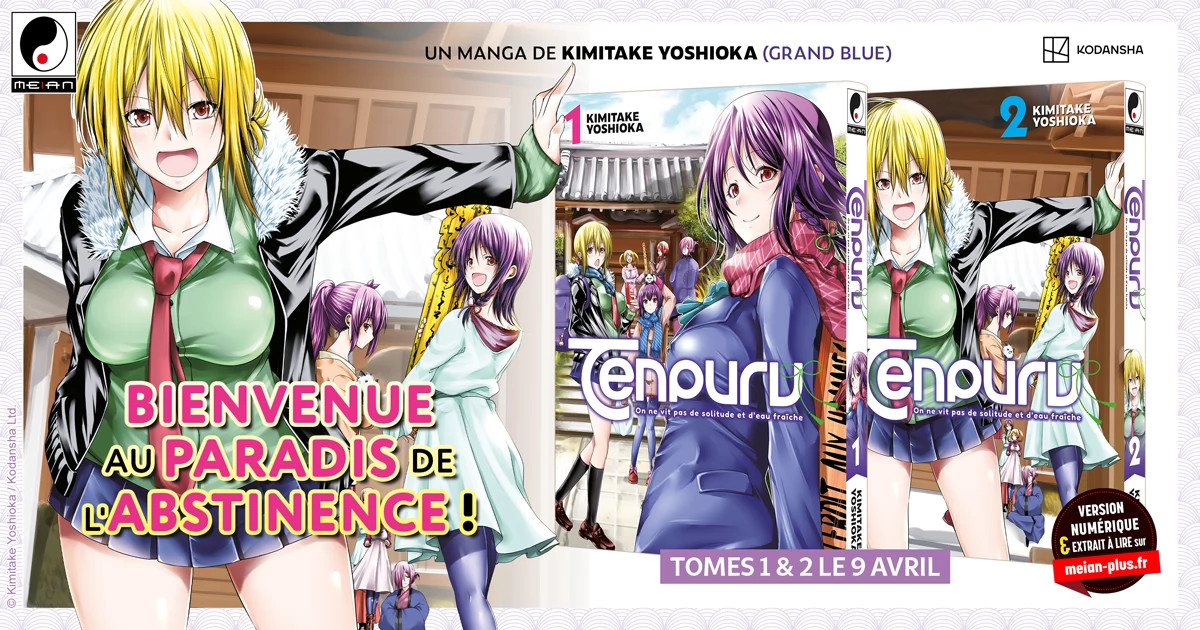 Après leur teasing habituel sur leurs réseaux sociaux hier, les éditions Meian ont annoncé dans la journée l’arrivée dans leur catalogue du manga TenPuru écrit et dessiné par Kimitake Yoshioka. La série se présente comme une comédie romantique harem où l’on suit un jeune homme, Akemitsu, qui est persuadé que devenir moine est la solution pour qu’il échappe à ses pulsions charnelles. Seulement son lieu d’isolement est en fait exclusivement peuplé de jeunes femmes. Tranche de vie, ecchi, quiproquos et moments de tendresse seront aux rendez-vous.