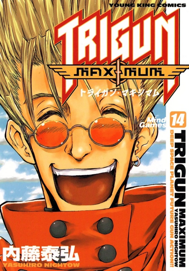 Trigun Maximum (トライガン・マキシマム) a été prépublié entre les mois d’octobre 1997 et de mars 2007 dans les pages du magazine Young King Ours (mensuel Seinen) des éditions Shonen Gahosha. La série, qui comporte un total de 104 chapitres, a été compilée en 14 tomes dans son édition d’origine. La série a été publiée chez nous une première fois aux éditions Tonkam entre 2004 et 2009. En dehors de Trigun Maximum, on connait aussi l’auteur, Yasuhiro Nightow, pour ses mangas Trigun (Tonkam) et Blood Blockade Battlefront (Kazé).