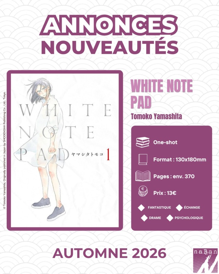 Un autre manga de Tomoko Yamashita sortira chez naBan cette année : White Note Pad.